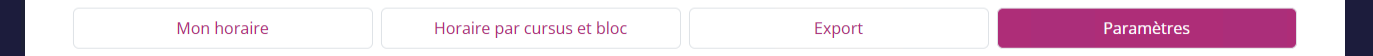 - Rendez-vous sur le module "Mon horaire" et cliquez sur l'onglet "Paramètres".